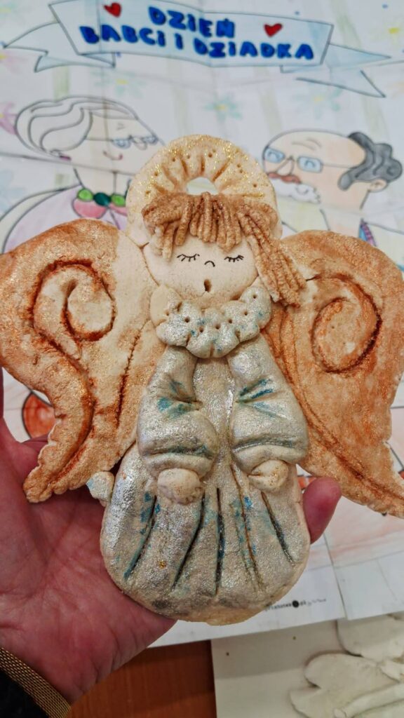 Aniołki z gliny – upominki dla babć i dziadków wykonane przez uczniów klasy 3
